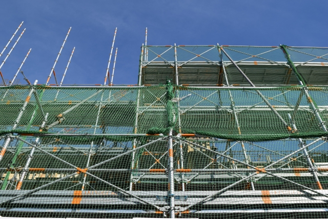 ビル建設現場の足場工事 大分県大分市
